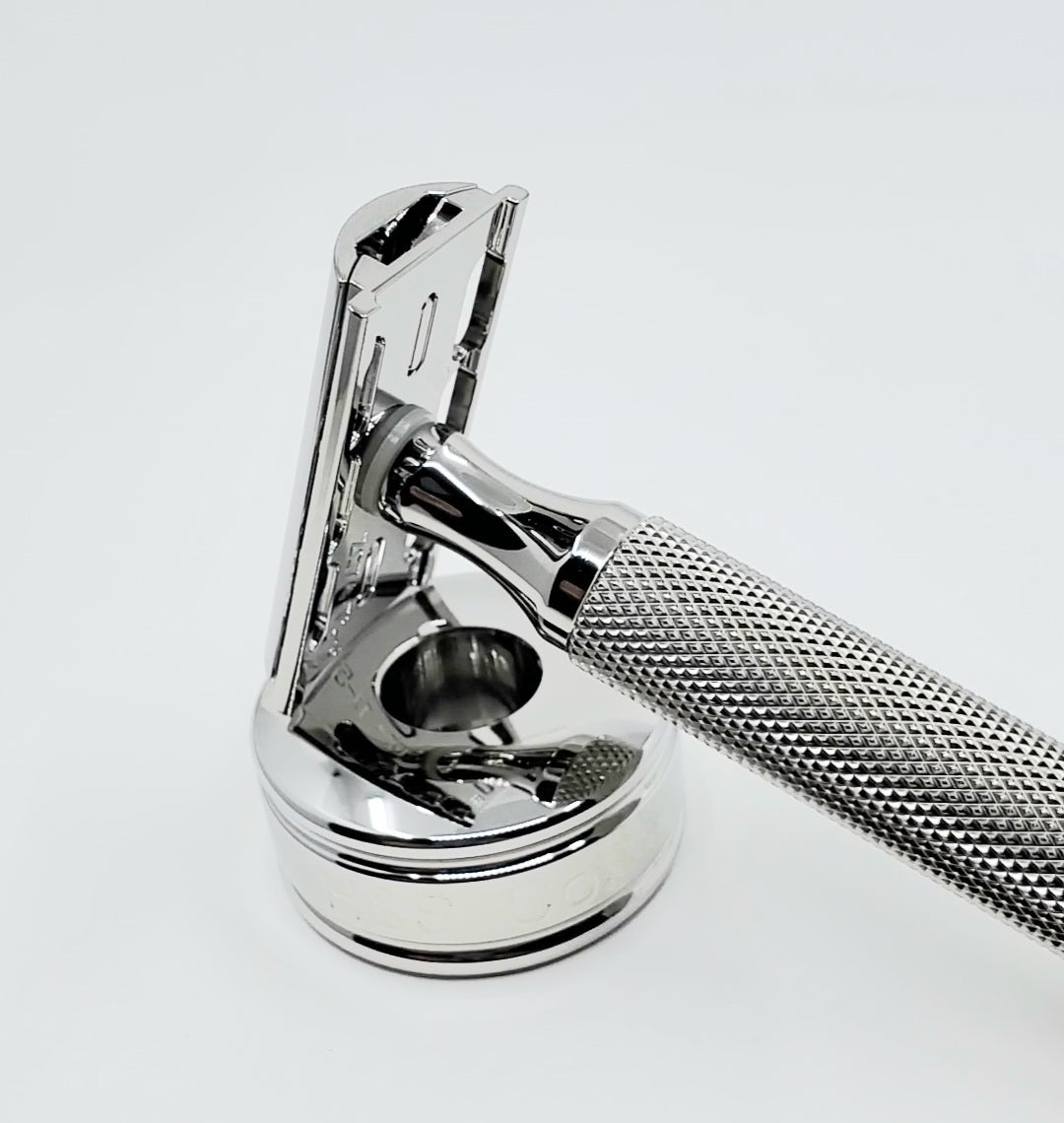 Machined finish and passivated 316 SS razor stand. Will fit all of our current handle designs.